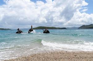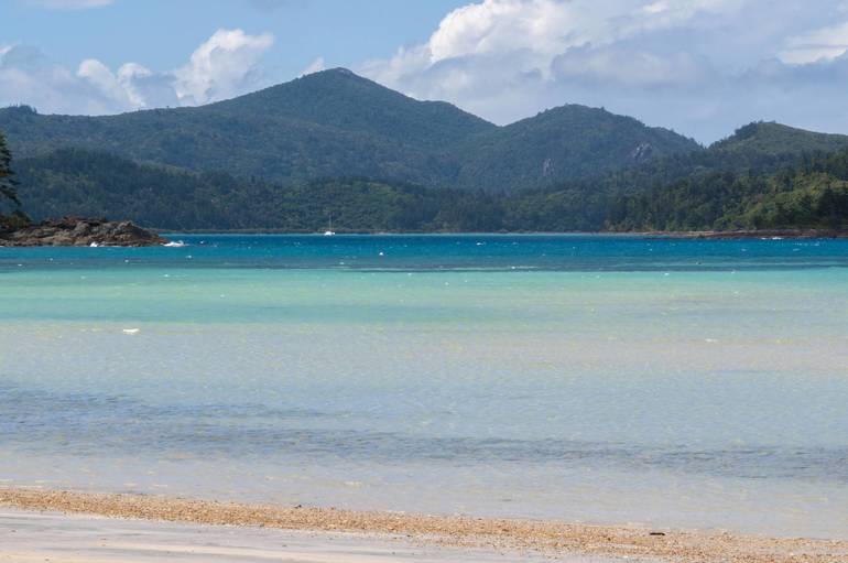 Stop 2 was Hamilton Island, een stuk groter en bestaande uit… nog meer resorts… Overal reden mensen rond in golfkarretjes en er waren winkels die niet zouden misstaan in de P.C. Een omgeving waar ik me op zich dus prima kan vermaken, maar niet als je aan het backpacken bent en je verheugd had op een spierwit strand. Strand hebben we overigens wel gevonden, het was alleen niet wit, maar prima om een paar uur door te brengen.