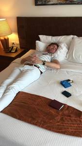 Nu zijn we in het hotel, hebben even een paar uur geslapen, gaan zo voor de room-service of slepen ons toch naar het restaurant om daarna eindelijk weer een lange nacht te slapen…