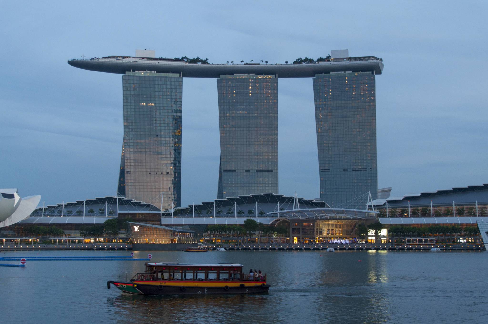 We waren helemaal blij, want we waren super op tijd, dus dat betekende een lange avond in het Marina Bay Sands, ons super-de-luxe hotel. Helaas vertrok de bus maar niet vanaf de grens en werd het later en later. We hadden niet zo door wat de oorzaak nou was, totdat een totaal bezwete Afrikaan de bus in stommelde. Hij kwam uit Ethiopië en was blijkbaar uren ondervraagd door de douane. Tja, kan niemand iets aan doen, maar wij baalden wel enorm… Dat werd nog erger toen we eenmaal in het hotel te horen kregen dat we de volgende ochtend al om 11:00 uit moesten checken. Op onze vraag of we het zwembad dan nog wel konden gebruiken voor de rest van de dag was het antwoord ‘nee’. Inmiddels was het een uur of 20:00 en moesten we nog eten. Een late check-out zou 250 euro kosten, dus dat was ook niet bepaald een optie. Uiteindelijk mochten we tot 12:00 blijven en aangezien het zwembad om 6:00 openging, was dat nog wel oke.