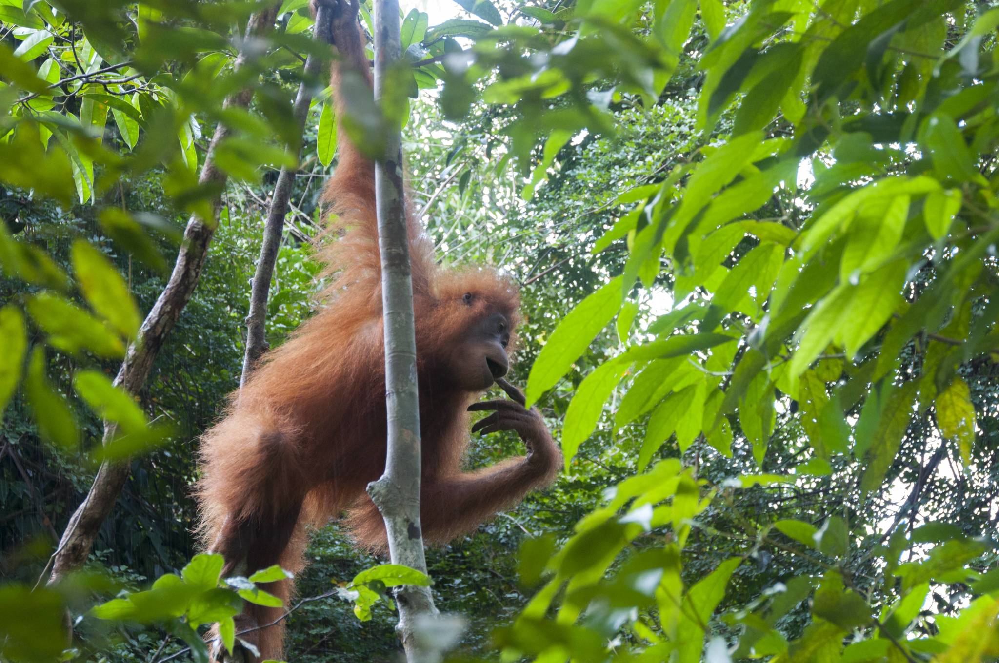 We hadden een tocht van 4 uur geboekt en aangezien we daarmee niet superdiep de jungle in gingen, hoopten we dat we toch orang oetans zouden gaan zien, maar de eigenaar van het guesthouse kon niets garanderen. Na een uurtje waren we al van top tot teen bezweet, terwijl de gids er nog fris & fruitig bijliep. We hadden 1 aap hoog in de bomen gezien, dus de tussenstand was matig. En toen ineens zagen we een orang oetan-moeder met baby. Al het gezweet en de moeheid waren direct vergeten, het was echt zo gaaf!